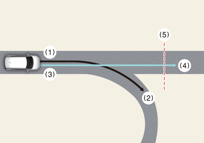 Wenn die Kurve zu groß oder zu klein ist, funktioniert die navigationsgestützte intelligente Tempomatsteuerung möglicherweise nicht.