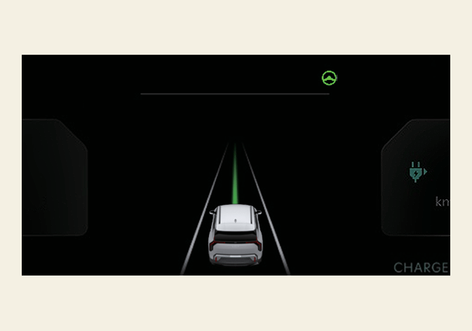Wenn das vorausfahrende Fahrzeug und beide Fahrbahnmarkierungen erkannt werden und Ihre Fahrzeuggeschwindigkeit unter 180 km/h (110 mph) liegt, leuchtet die grüne (