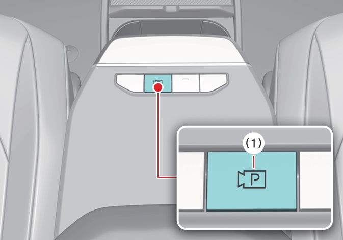 Drücken Sie die Taste Parken/Sicht (1), um den Heckmonitor einzuschalten.