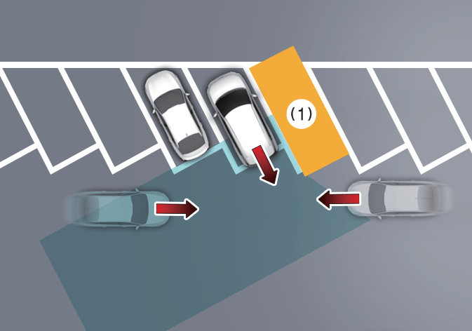 Der Heckverkehr-Kollisionsvermeidungsassistent kann beim diagonalen Rückwärtsfahren in seiner Funktionalität eingeschränkt sein und sich von links oder rechts nähernde Fahrzeuge möglicherweise nicht erkennen. In diesem Fall warnt die Funktion den Fahrer möglicherweise nicht und steuert die Bremsen nicht, wenn dies erforderlich ist. Prüfen Sie beim Zurücksetzen immer Ihre Umgebung. |