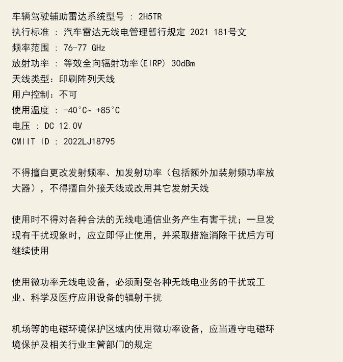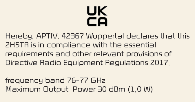 Die Funkfrequenzkomponenten (Eckradar vorn/Eckradar hinten) erfüllen folgende Anforderungen (ausstattungsabhängig):