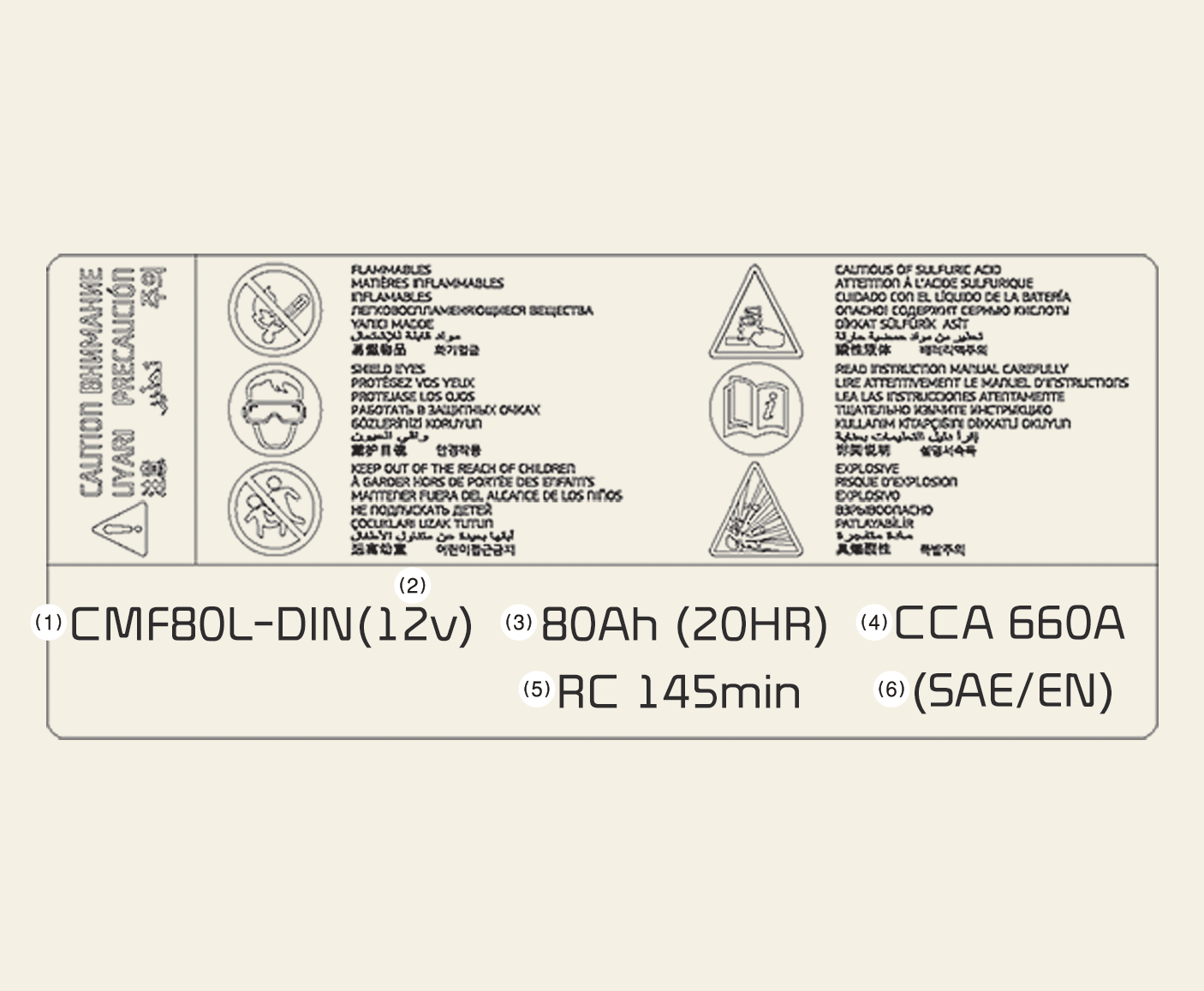 Die tatsächliche Batteriekennzeichnung im Fahrzeug kann von der Abbildung abweichen.