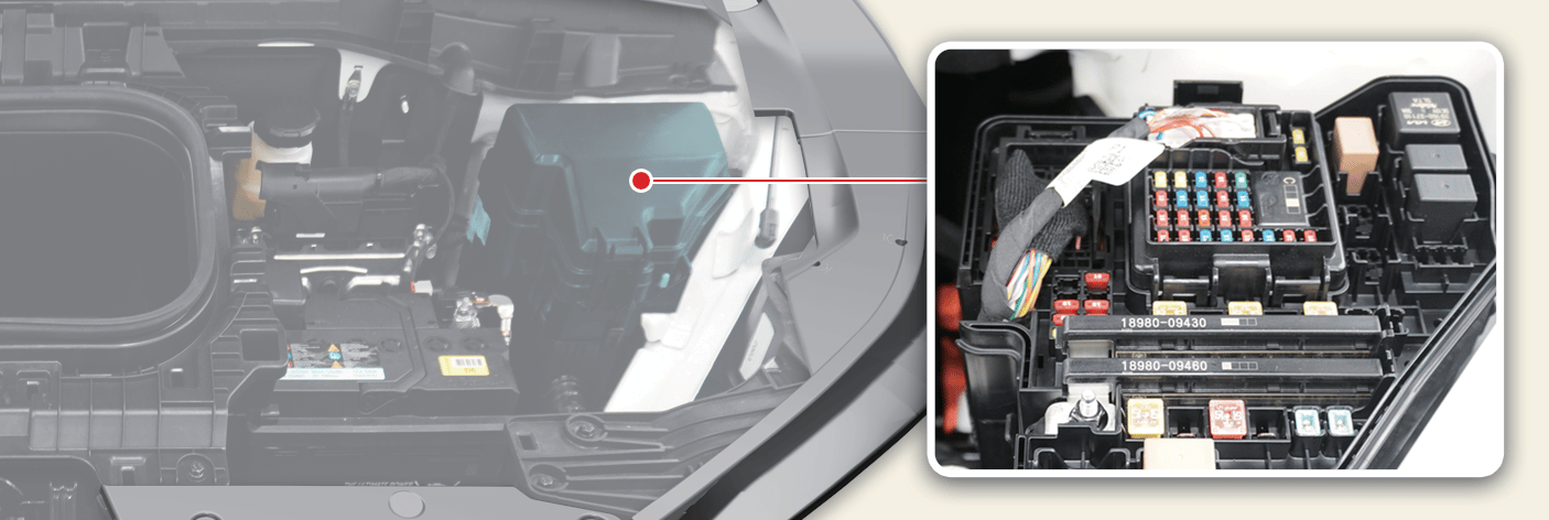 Die elektronische Anlage funktioniert möglicherweise nicht ordnungsgemäß, selbst wenn der Motorraum und einzelne Sicherungen des inneren Sicherungskastens nicht getrennt sind. In einem derartigen Fall kann die Ursache des Problems in der Trennung der Hauptsicherung (BFT-Typ) liegen, die sich in der Kappe des Pluspols der Batterie befindet. Da es sich bei der Hauptsicherung um ein komplexeres Bauteil handelt, sollten Sie sich an eine Fachwerkstatt wenden. Kia empfiehlt den Besuch eines autorisierten Kia-Händlers/Servicepartners in Ihrer Nähe.