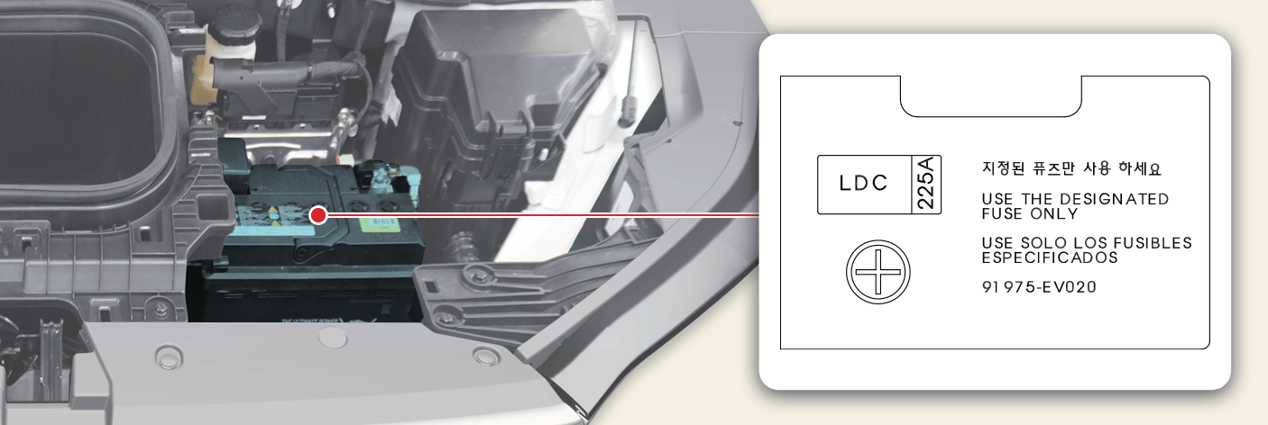 Kennzeichnung Sicherungskasten auf der Fahrerseite