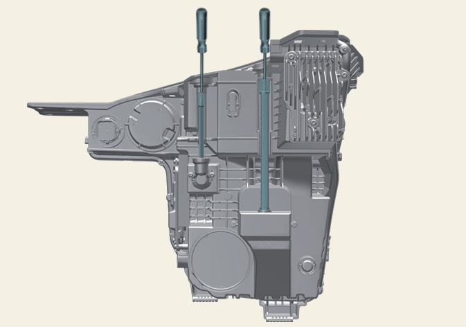Um das Abblendlicht nach links oder rechts auszurichten, drehen Sie den Schraubendreher (1) nach links oder rechts. Um das Abblendlicht nach oben und unten zu verstellen, drehen Sie den Schraubendreher (2) nach links oder nach rechts.