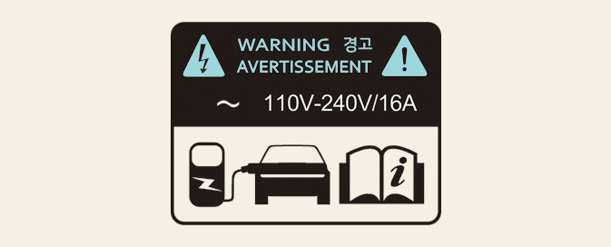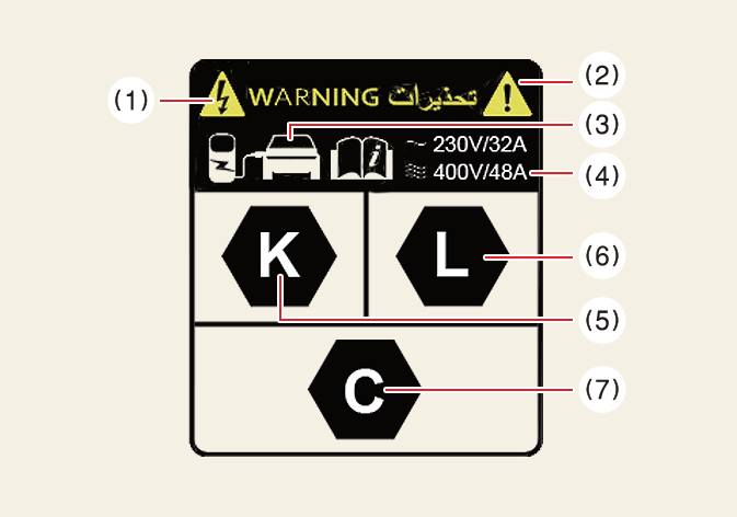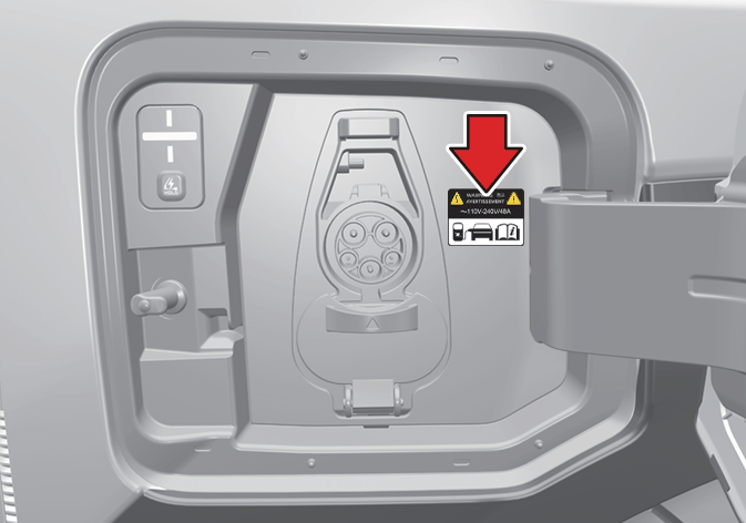 Prüfen Sie nach Öffnen der Ladeklappe das Ladesymbol unten auf dem Warnschild.