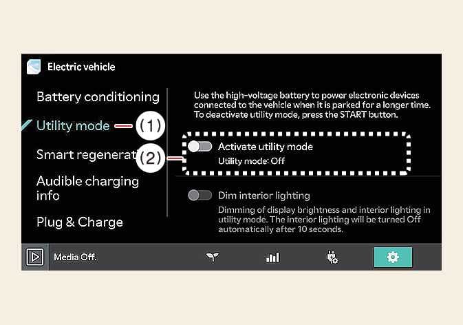 Select screen, switch the Utility mode activation menu to OFF on the In the infotainment system. After confirming the deactivation of the utility mode, press YES to deactivate the utility mode and the vehicle will turn off.
