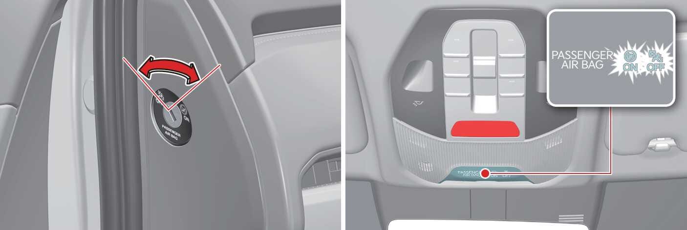 Insert master key into the passenger's front airbag ON/OFF switch.