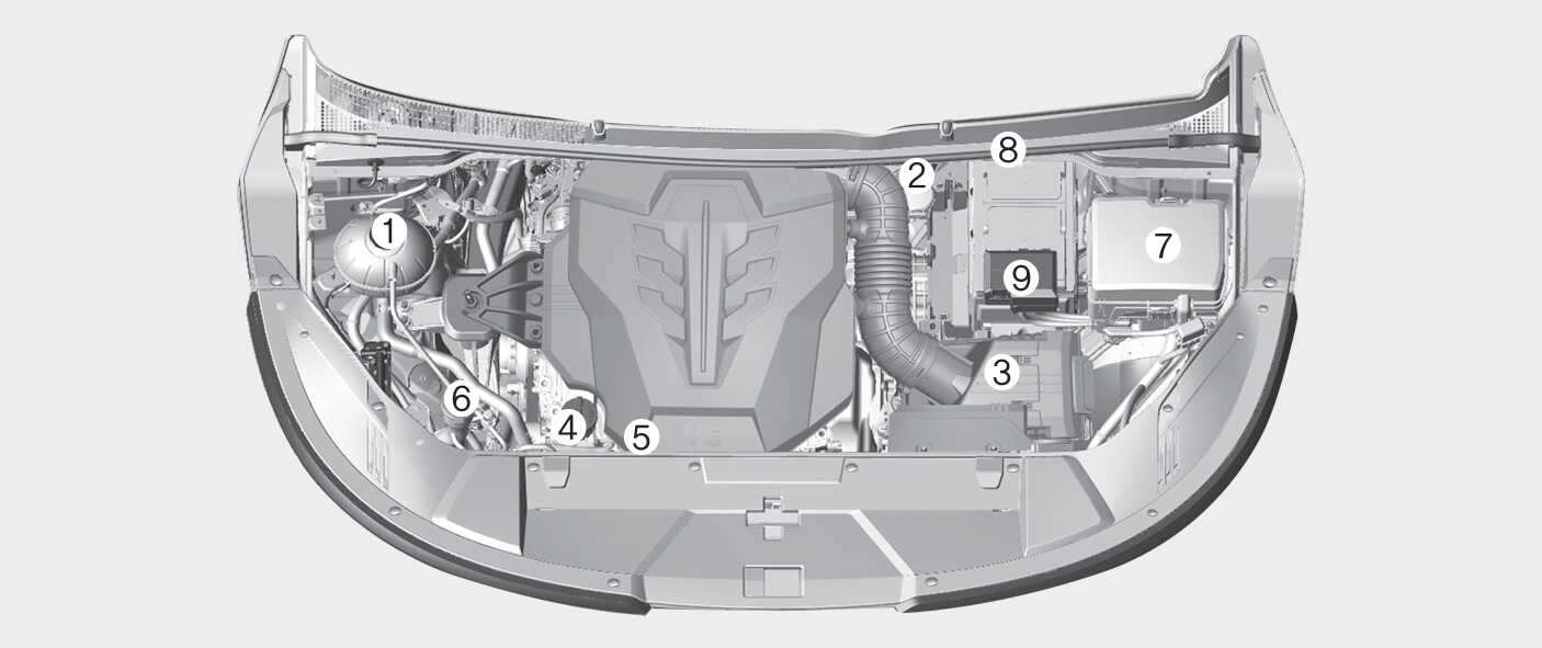 The actual engine room in the vehicle may differ from the illustration.