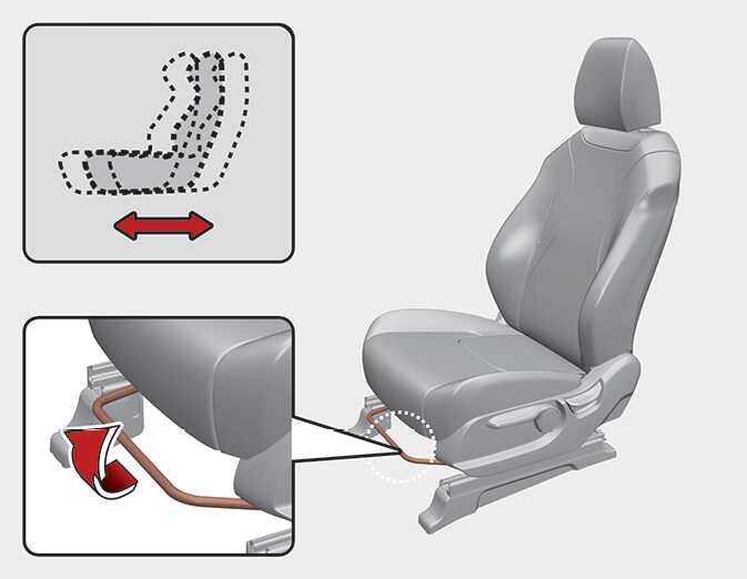 Adjust the seat before driving, and make sure the seat is locked securely by trying to move forward and backward without using the lever. If the seat moves, it is not locked properly.