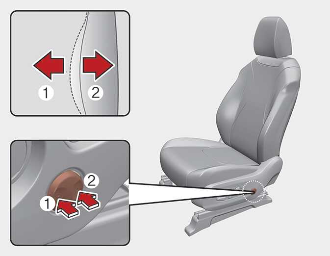 Press the front portion (1) of the switch to increase the support, or the rear portion (2) of the switch, to decrease the support.