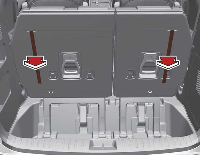 Do not place luggage on the folded down seat back of 3rd row seats. Put luggage behind 2nd row seats after the folded 3rd row seat is stowed away into the floor.
