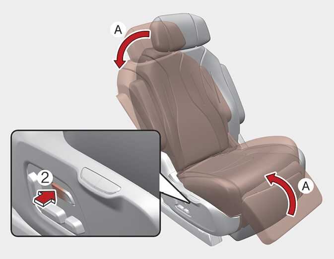 If you push down the one touch switch (1), the seat will be adjusted to the VIP Lounge position without leg support. If you push the switch (2), the seat will be slightly adjusted to the desired VIP Lounge position with leg support.