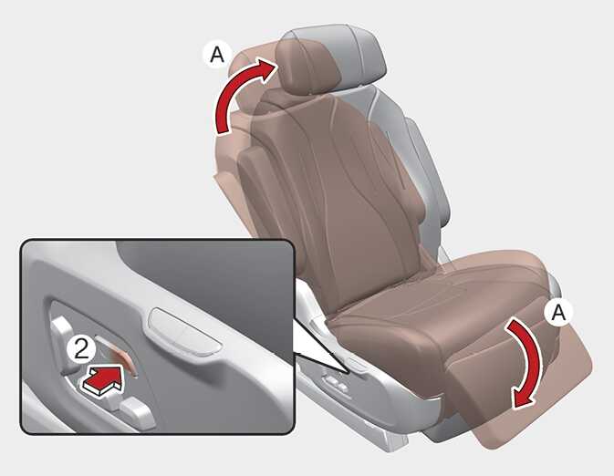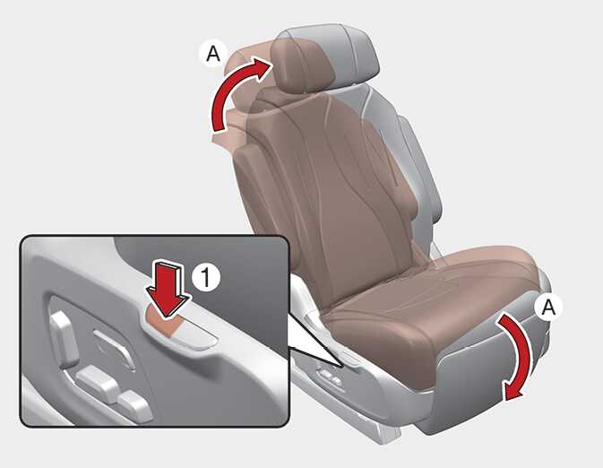 If you push down the one touch switch (1), the seat will return to the previous position. If you push the switch (2), the seat will be slightly adjusted to the previous position.