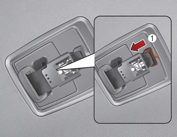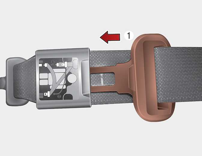 Pull out the mini tongue from hole on the belt assembly cover (1) and then slowly pull the seat belt out from the retractor.