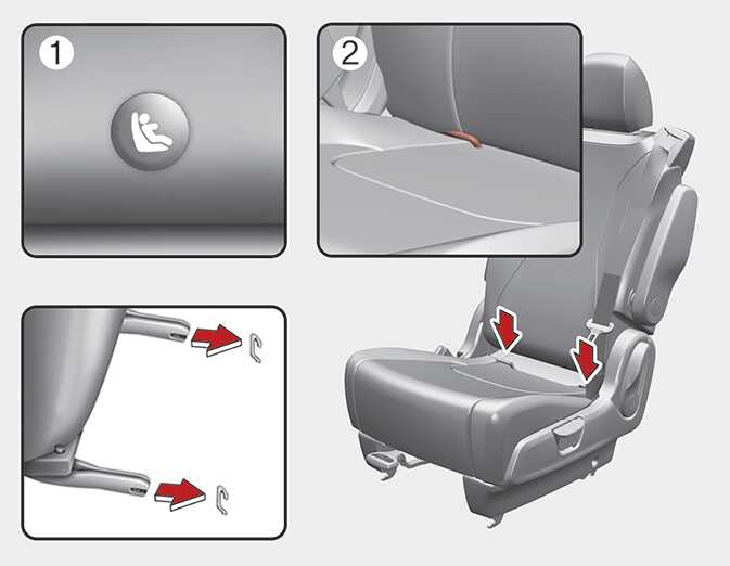 The lower anchor position indicator symbols are located on the left and right rear seatbacks to identify the position of the lower anchors in your vehicle (see arrows in illustration).