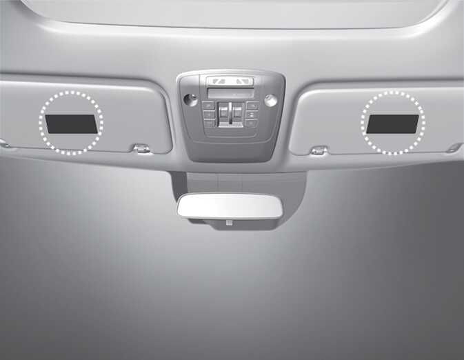 Air bag warning labels, some required by the U.S. National Highway Traffic Safety Administration (NHTSA, U.S. only), are attached to the sun visor to alert the driver and passengers of potential risks of the air bag system.