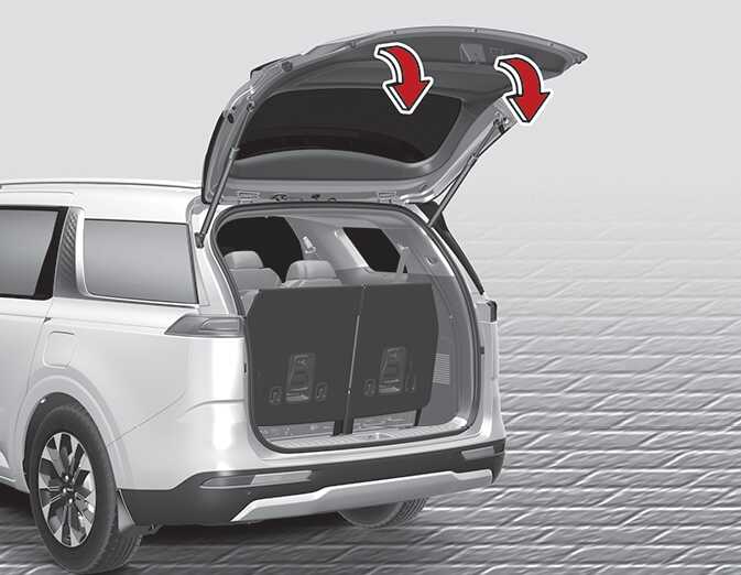 To close the liftgate, lower and push down the liftgate firmly. Make sure that the liftgate is securely latched.
