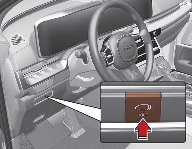 When the liftgate is closed, press the power liftgate open/close button for 1 second. The power liftgate opens with a warning sound.