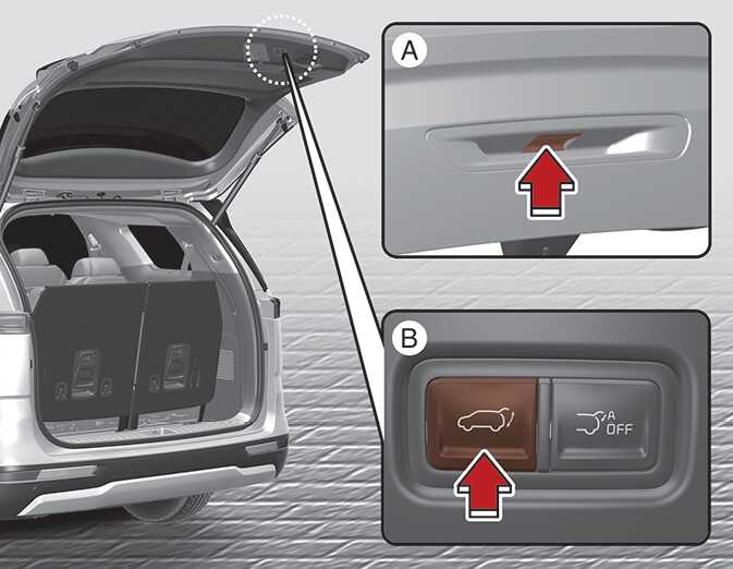 Press the power liftgate open/close inner button (A) and outer button (B) simultaneously until a chime sounds.