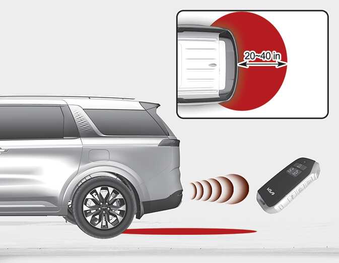 The Smart Liftgate with Auto Open operates with a welcome alert if the smart key is detected within 20 ~ 40 in (50 ~ 100 cm) from the liftgate.