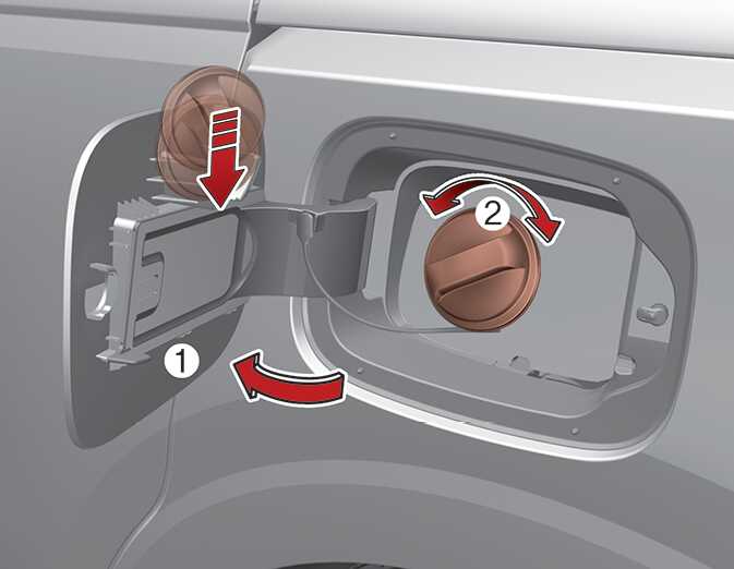 To remove the fuel tank cap (2), turn it counterclockwise. You may hear a hissing noise as the pressure inside the tank equalizes.