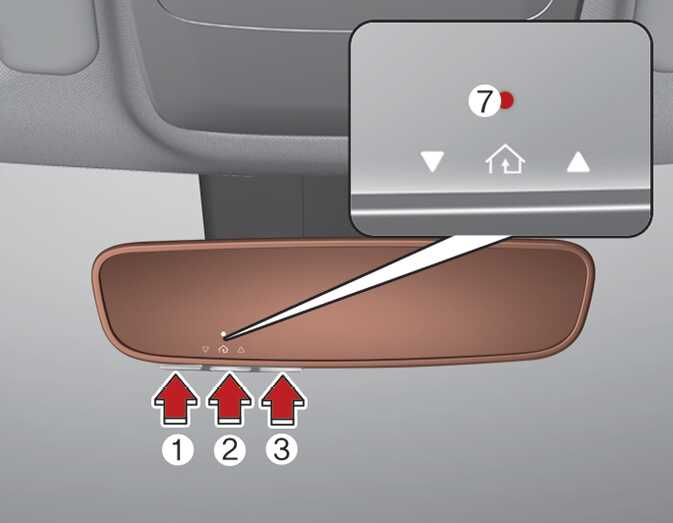 Press and release the HomeLink button (1), (2) or (3), you would like to program. The HomeLink indicator light (7) will flash orange slowly (if not, perform the steps of "Erasing HomeLink Buttons" section, and start over).