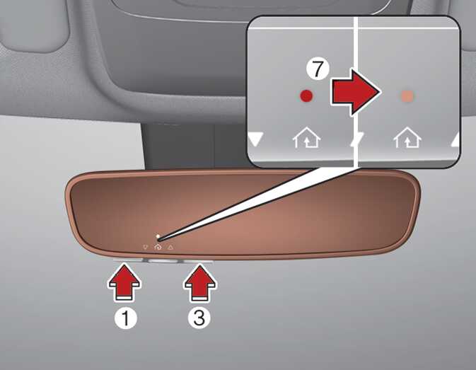 Release the buttons once the HomeLink indicator light (7) changes to Green and flashes rapidly