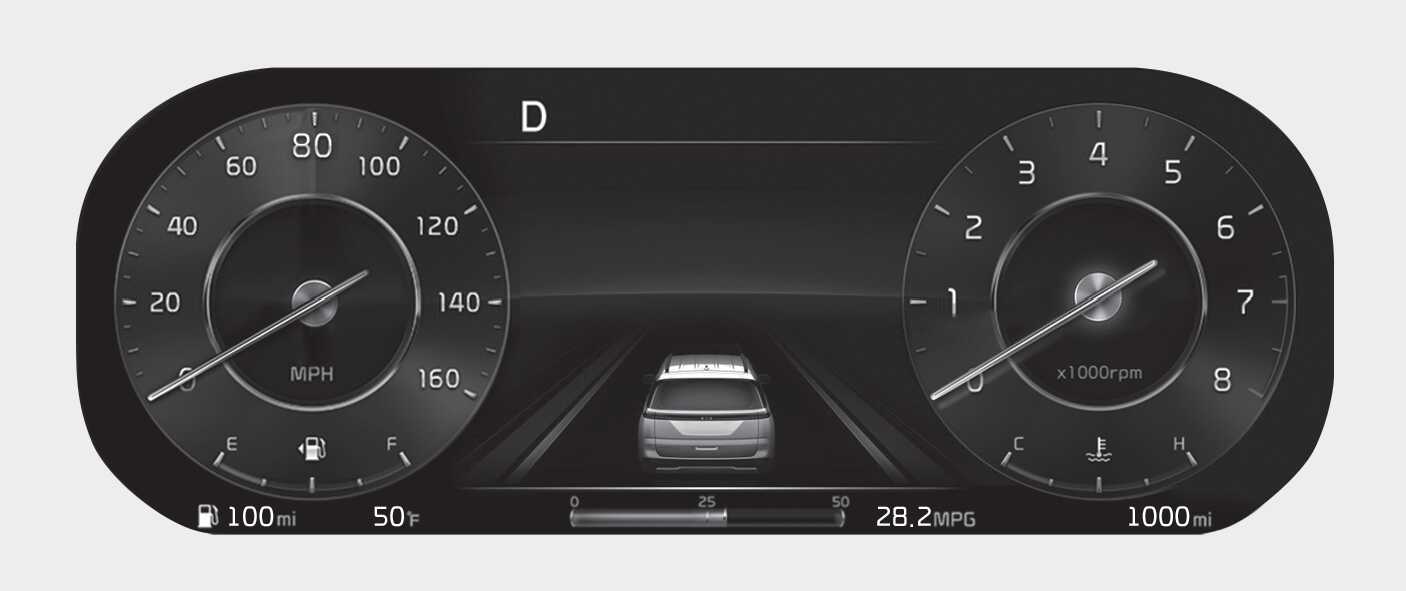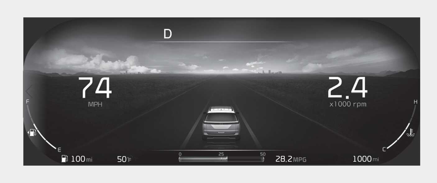 Link to Drive Mode is the basic theme of the full LCD type cluster and provides different graphic styles depending on drive mode.