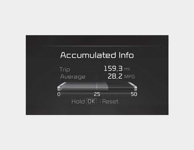 The trip computer mode displays information related to vehicle driving parameters including fuel economy, tripmeter information and vehicle speed.