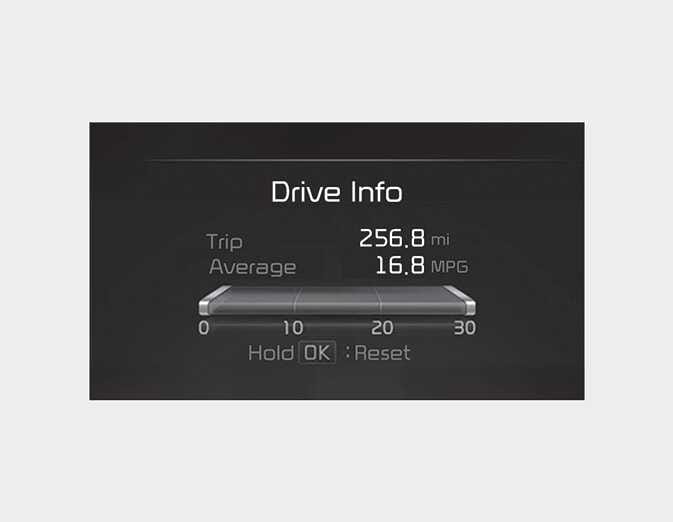This display shows the trip distance, the average fuel efficiency, and the instant fuel efficiency (or the total driving time).