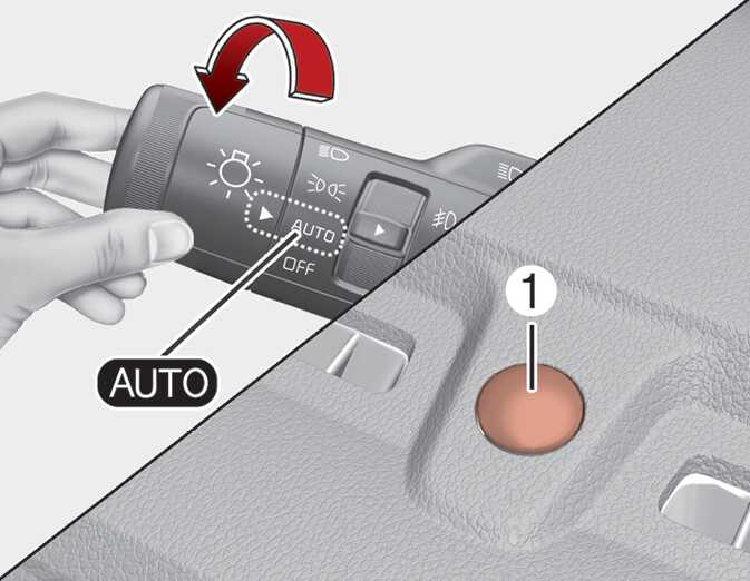 Never place anything over the sensor (1) located on the instrument panel as this will ensure better auto-light system control.