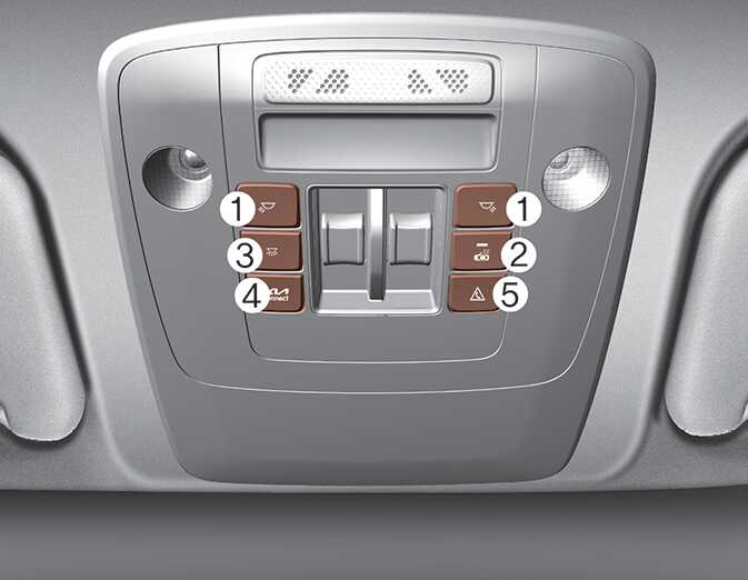 (3): Press this switch to turn the front and rear room lamps on and off.