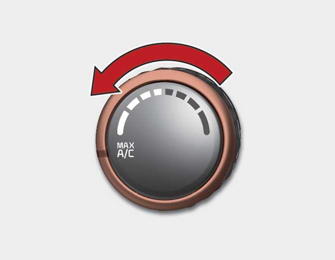 To operate the MAX A/C, turn the temperature knob all the way to the left. Air flow is directed toward the upper body and face.