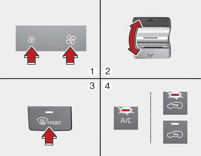 If the air conditioning and outside (fresh) air position are not selected automatically, adjust the corresponding button manually. If the