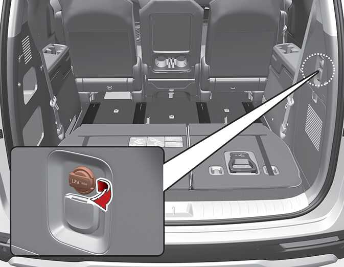 Do not connect another vehicle's Tire Mobility Kit (TMK) to the power outlet. The unmatched power requirement between the vehicle power outlet and the tire mobility kit can cause fire or circuit damage within the vehicle and the Tire Mobility Kit.