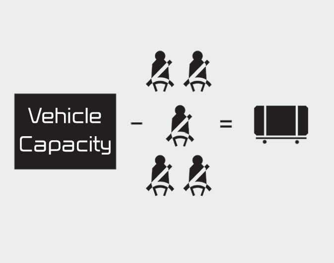 Determine the combined weight of luggage and cargo being loaded on the vehicle. That weight may not safely exceed the available cargo and luggage load capacity calculated in Step 4.