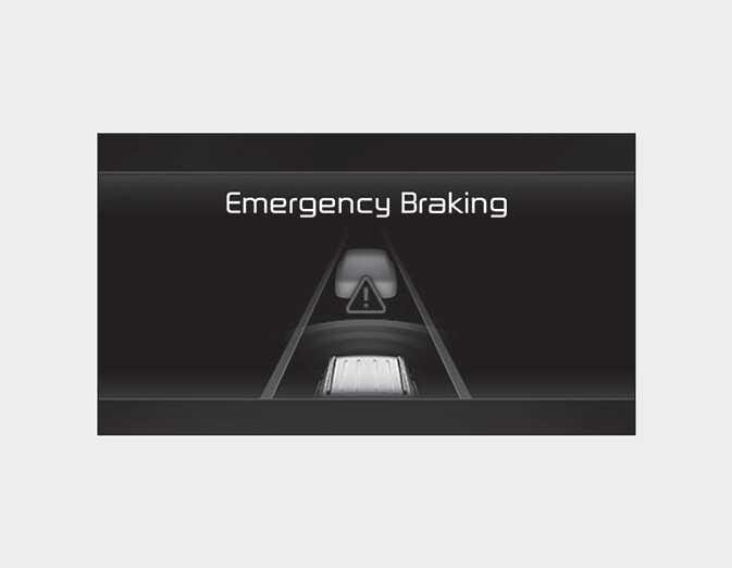 To warn the driver that emergency braking will be assisted, the 'Emergency Braking' warning message will appear on the cluster and an audible warning will sound.