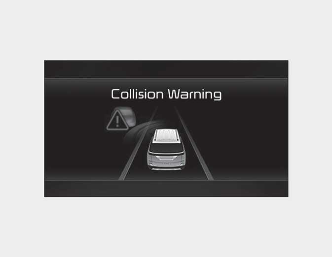 To warn the driver of a collision, the 'Collision Warning' warning message will appear on the cluster and an audible warning will sound.