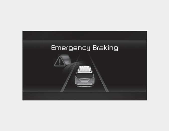 To warn the driver that emergency braking will be assisted, the 'Emergency Braking' warning message will appear on the cluster, an audible warning will sound and the steering wheel will vibrate.