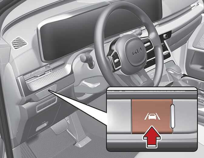 With the engine on, press and hold the Lane Safety button located on the instrument panel to turn on Lane Keeping Assist. The white (