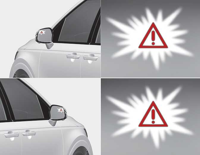 To warn the driver of a collision, the warning light on the outside rearview mirror will blink and a warning message will appear on the cluster. At the same time, an audible warning will sound.