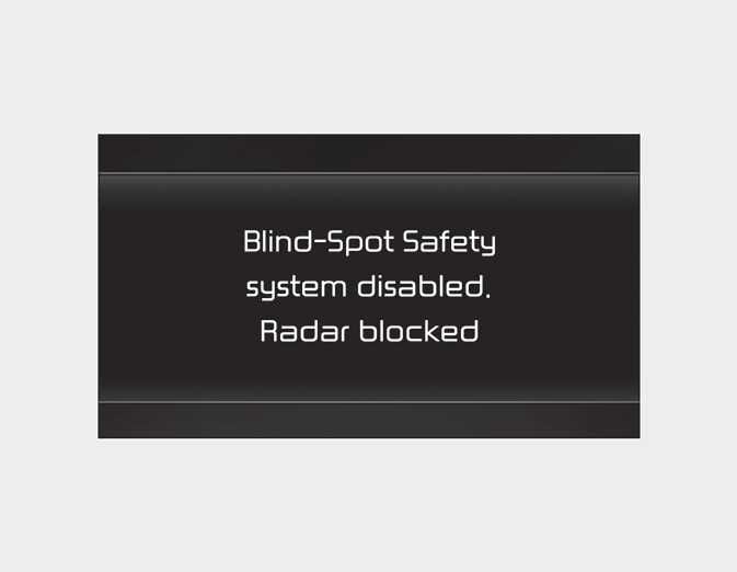 If this occurs, the 'Blind-Spot Safety system(s) disabled. Radar blocked' warning message will appear on the cluster.