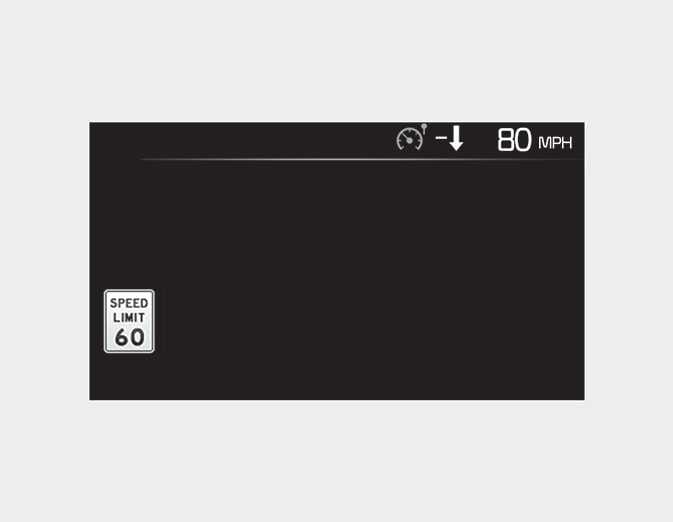 If the speed limit of the road changes during the operation of Manual Speed Limit Assist or Smart Cruise Control, an arrow in the direction of up or down is displayed to inform the driver that the set speed needs to be changed. At this time, the driver can change the set speed according to the speed limit by using the + or – switch on the steering wheel.