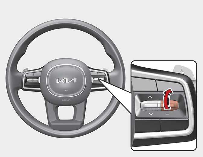 Push the + switch up and hold it while monitoring the set speed on the cluster. The set speed will increase to the nearest multiple of five (multiple of ten in km/h) at first, and then increase by 5 mph (10 km/h) each time the switch is operated in this manner.
