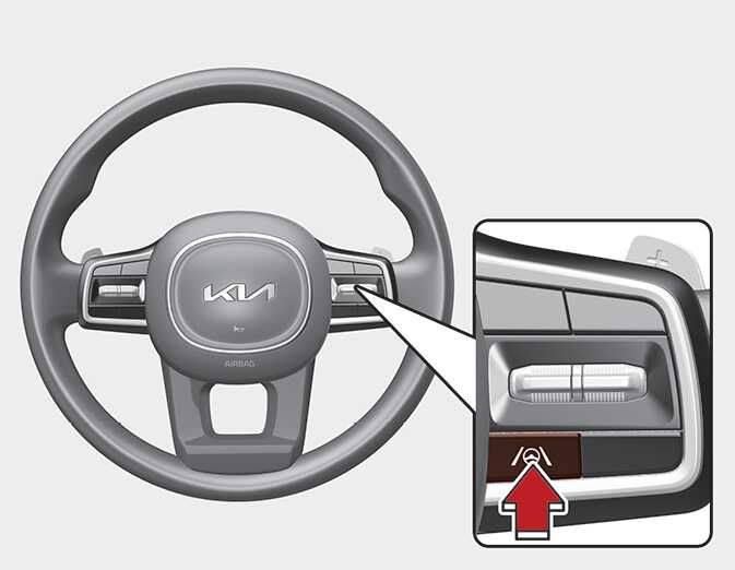 With the engine on, shortly press the Lane Driving Assist button located on the steering wheel to turn on Lane Following Assist. The white or green (