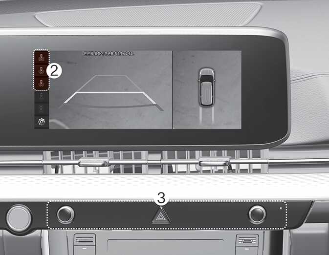 When one of the infotainment system button (3) is pressed without the gear in R (Reverse), Surround View Monitor will turn off.