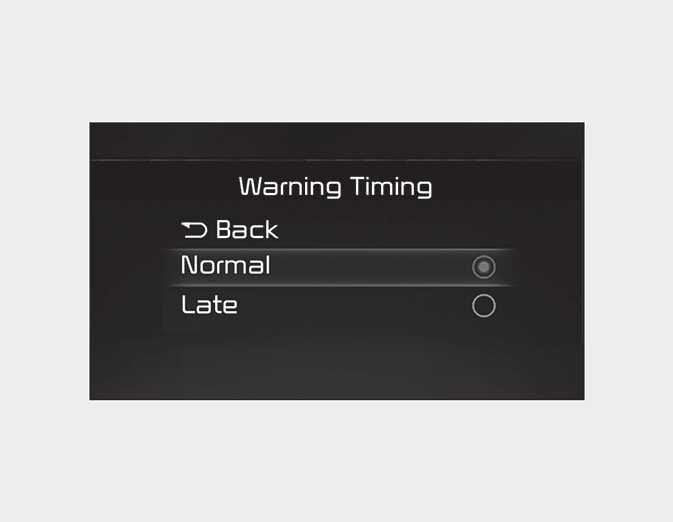 If 'Normal' is selected, the Warning Timing is set to Normal. If 'Normal' feels sensitive, change the settings to 'Late'.