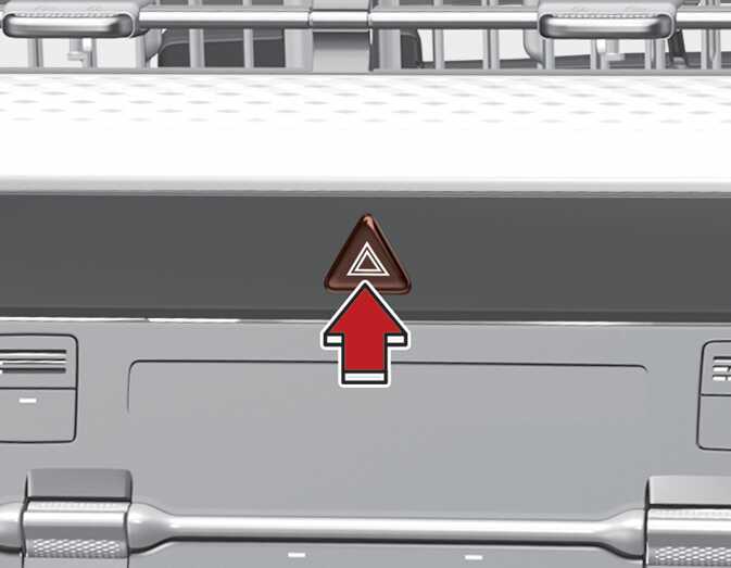 Depress the flasher switch with the ENGINE START/STOP button in any position. The flasher switch is located in the center fascia panel. All turn signal lights will flash simultaneously.
