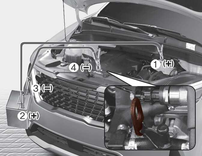 Do not allow the (+) and (-) jumper cables to touch. It may cause sparks.